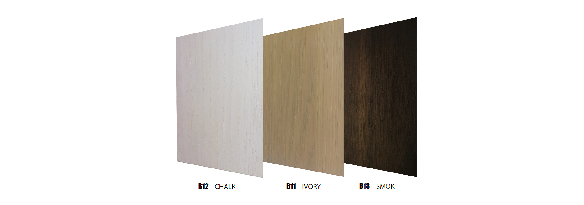 La serie Belgio está formada por capa superior de chapa (0.6 mm), un núcleo de MDF de 22 mm y una capa de equilibrio (0.6 mm)