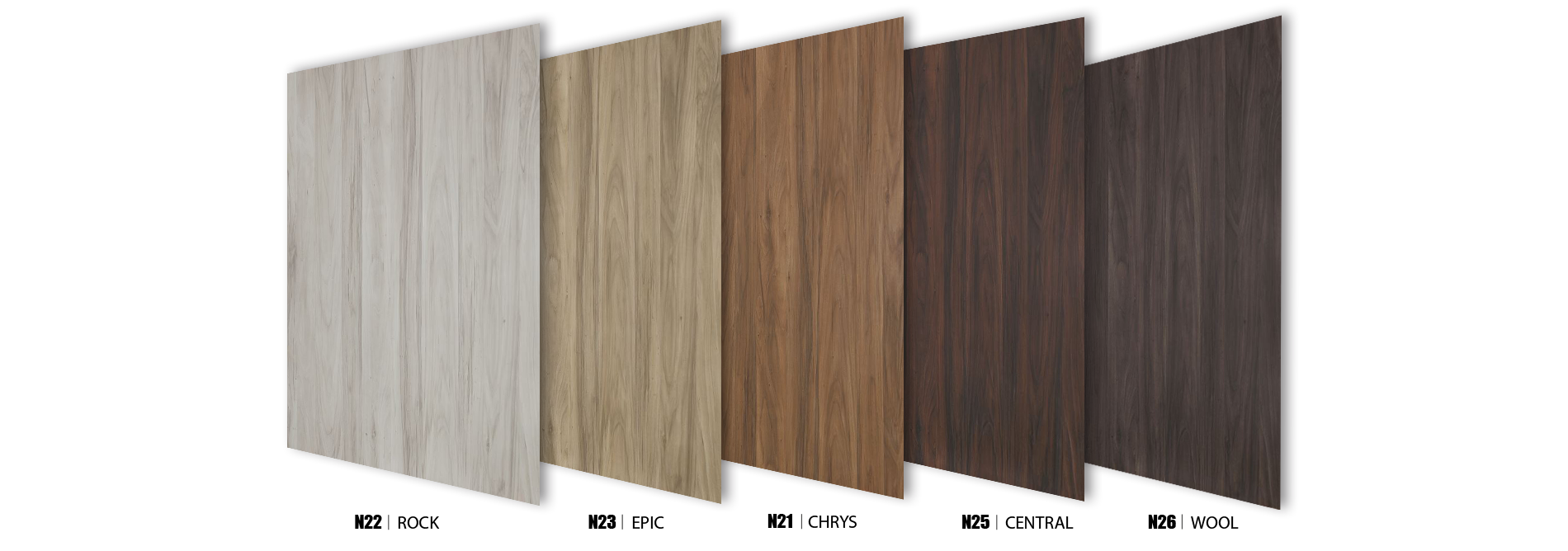La nueva serie Noce se basa en un panel de partículas recubierto con melamina sincronizada.
